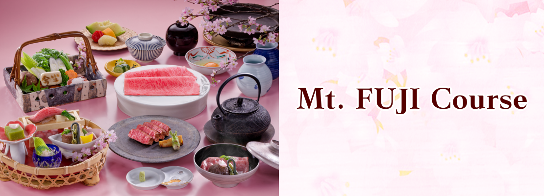 Appetizer・Soup・Assortment of 4 types of Sashimi・Assortment of Simmered Dishes・Sukiyaki / Shabu-shabu・Rice・Dessert